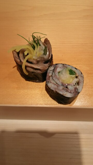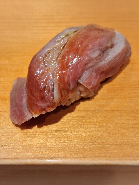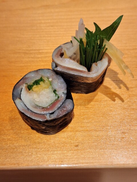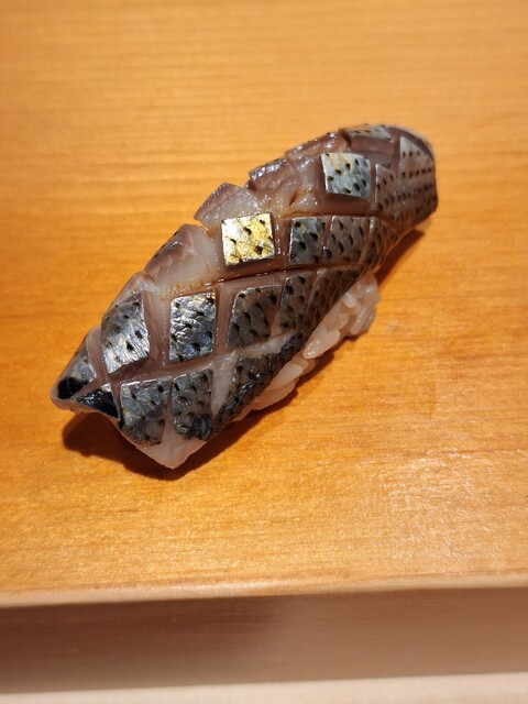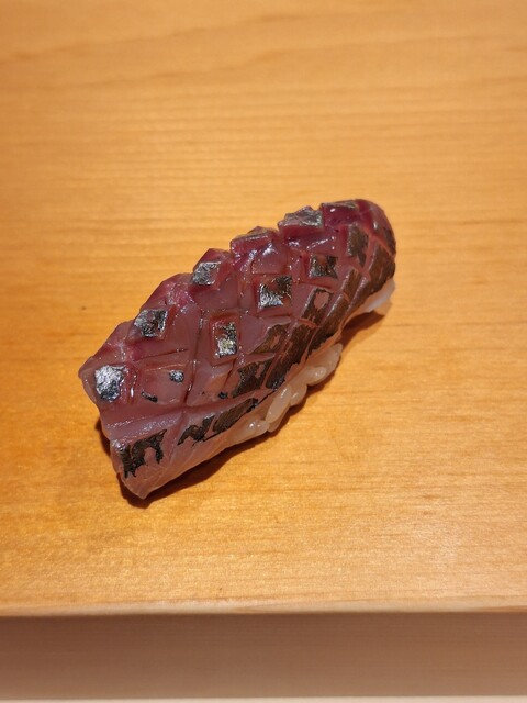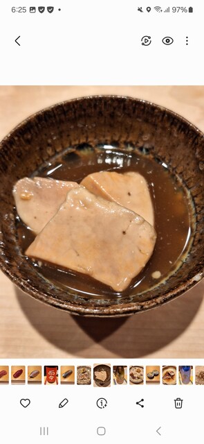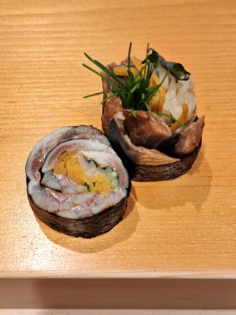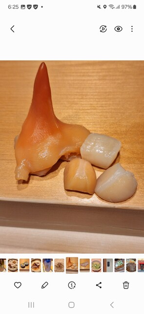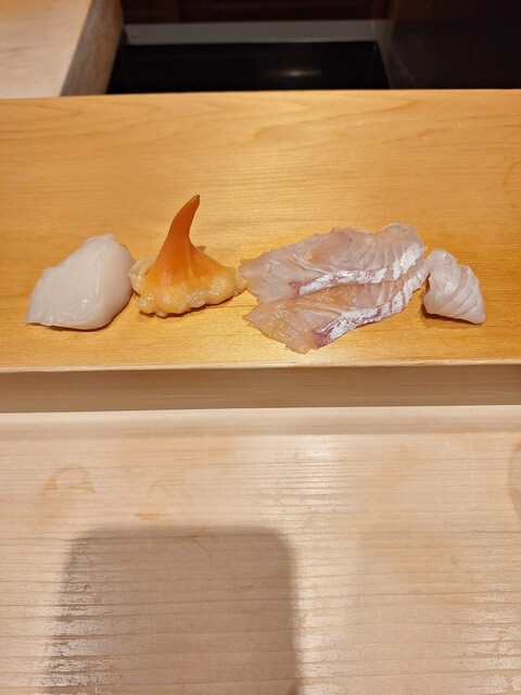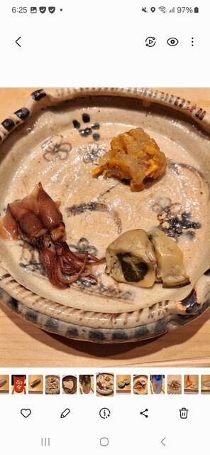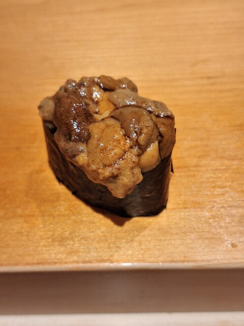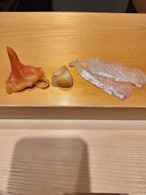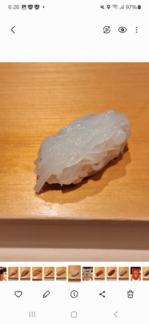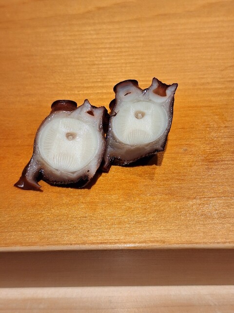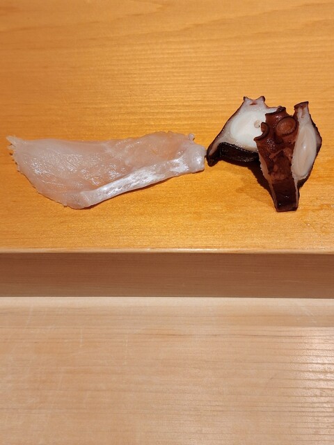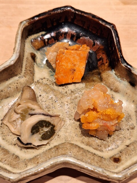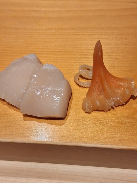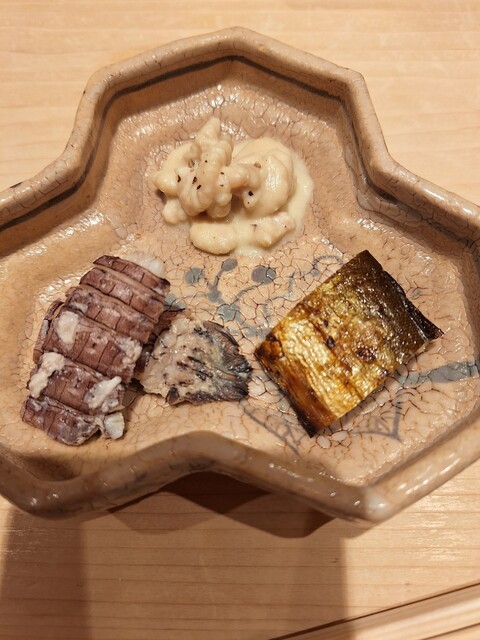 鮑(肝ソース、イカ、酢飯) かなり美味