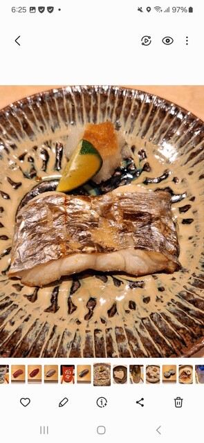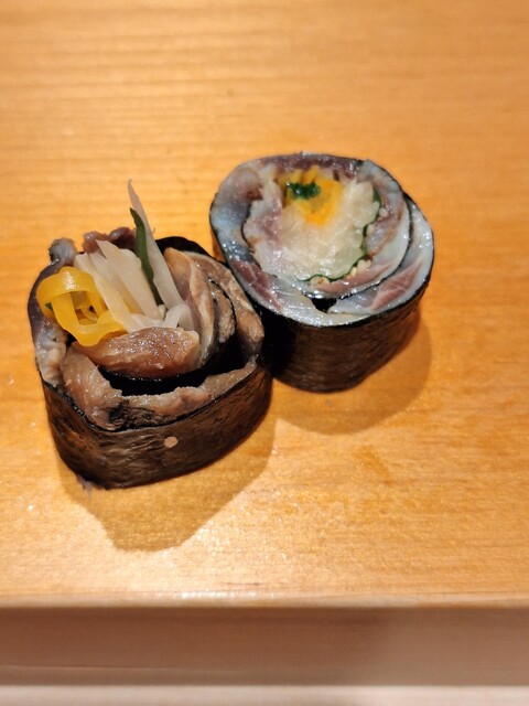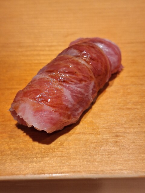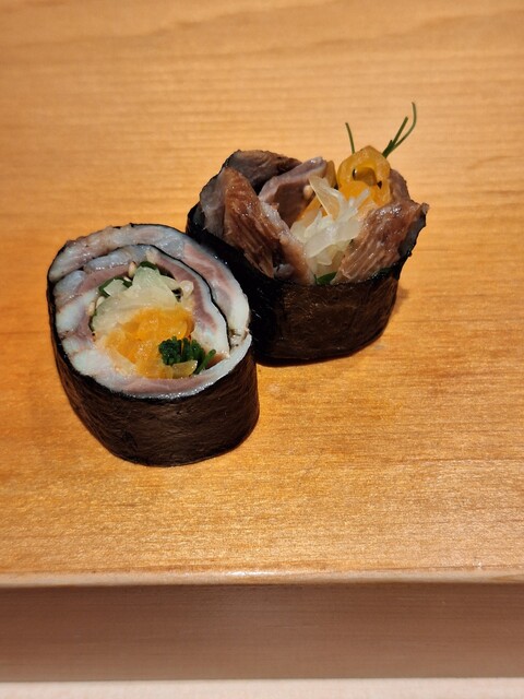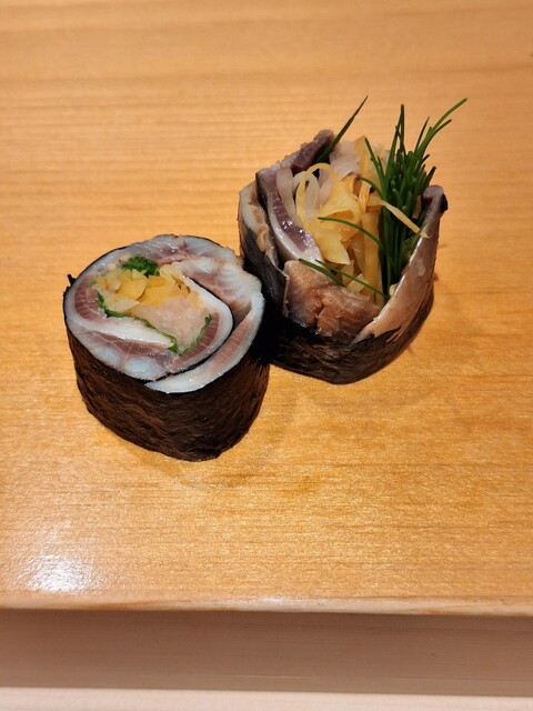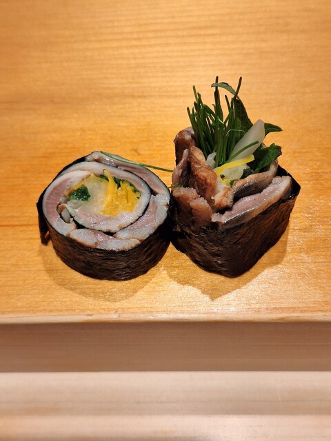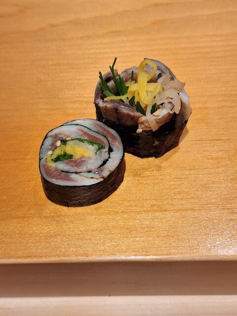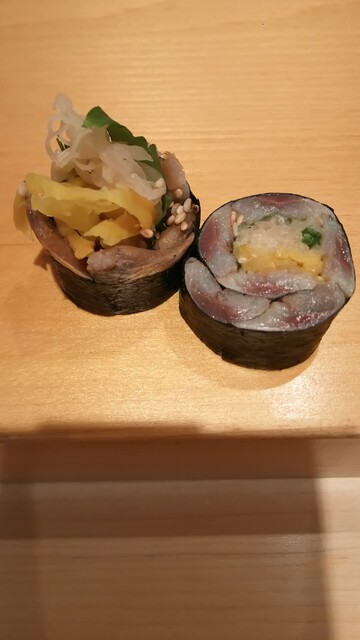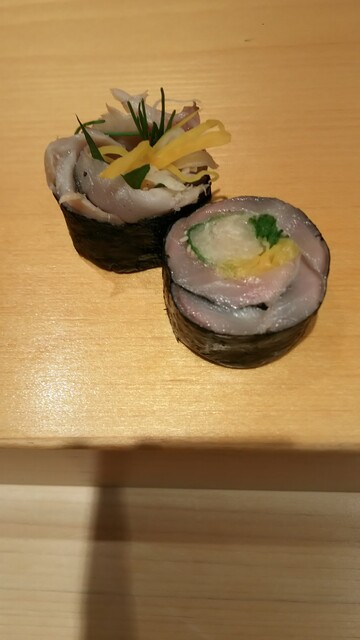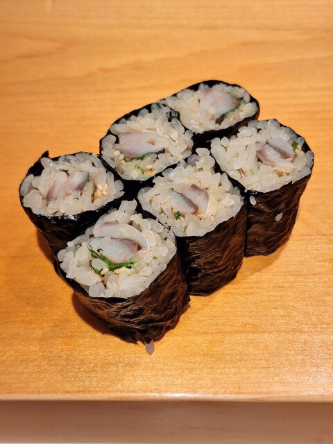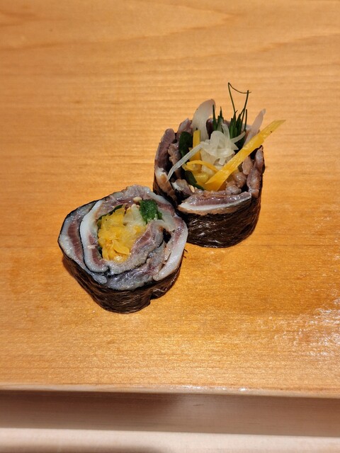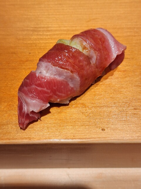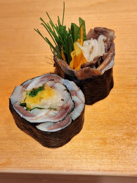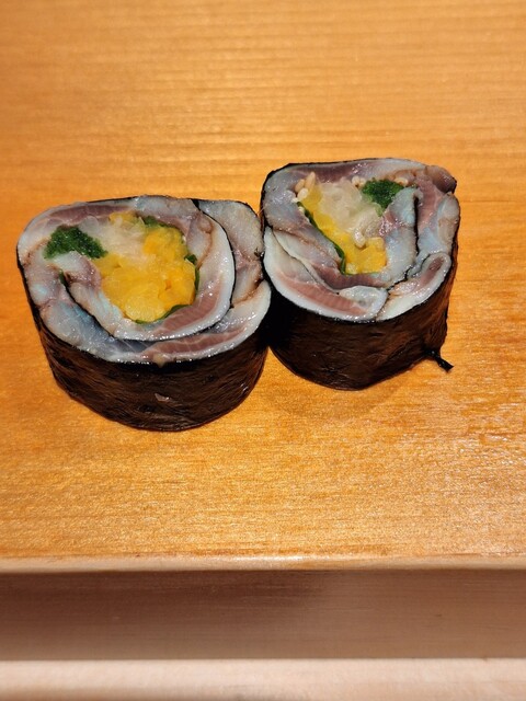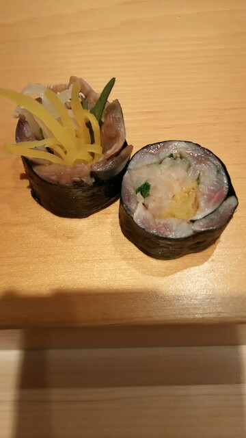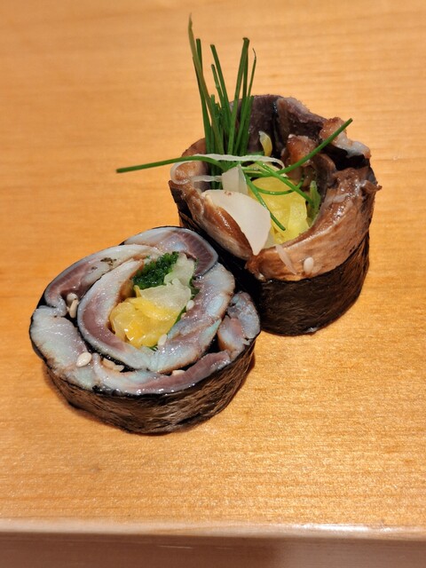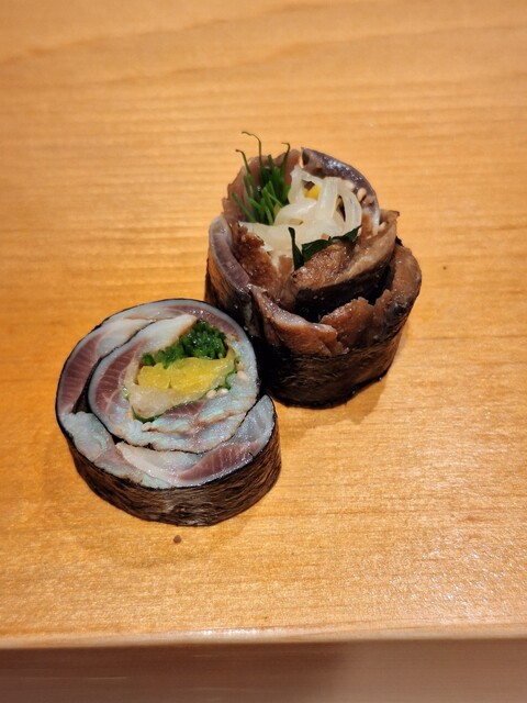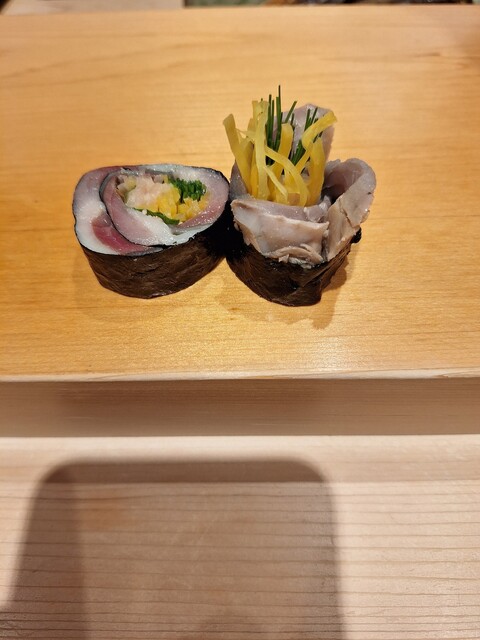 鮑(肝ソース、イカ、酢飯) かなり美味