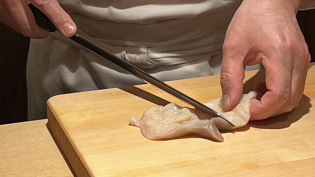 →肉厚で脂のりつつキリッと綺麗な小肌はもちろん美味しいのですが、この季節にしか食べられない瑞々しく爽やかなしんこは季節感あり格別です。