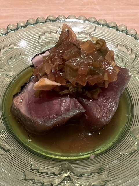 →少しとろりねとりとしつつ鰹の爽やかな香り香る一品で旨しでした。