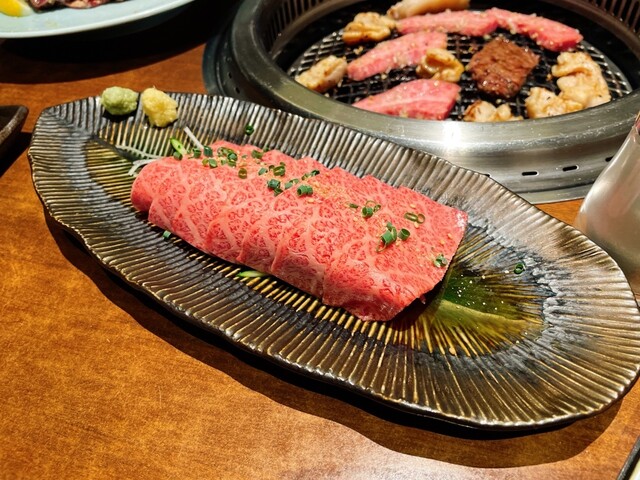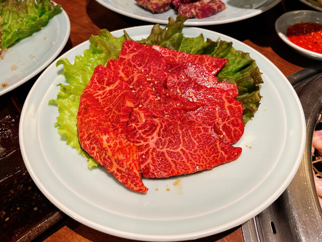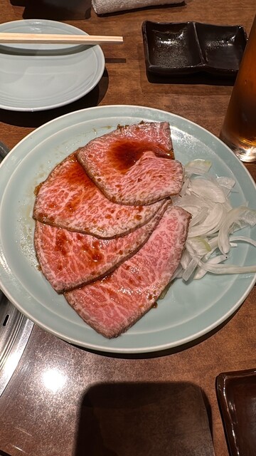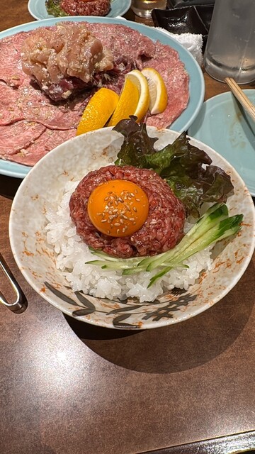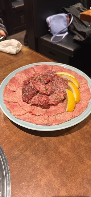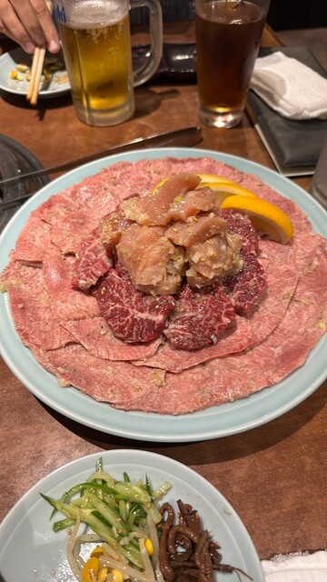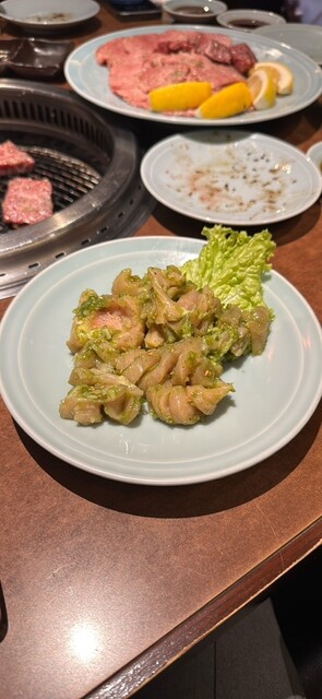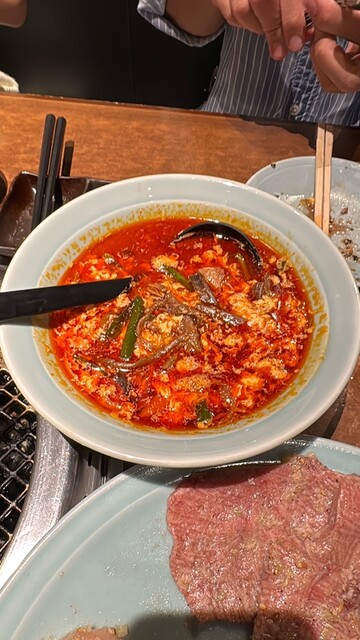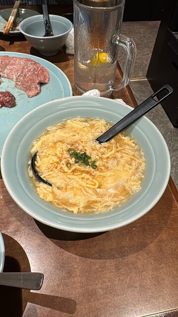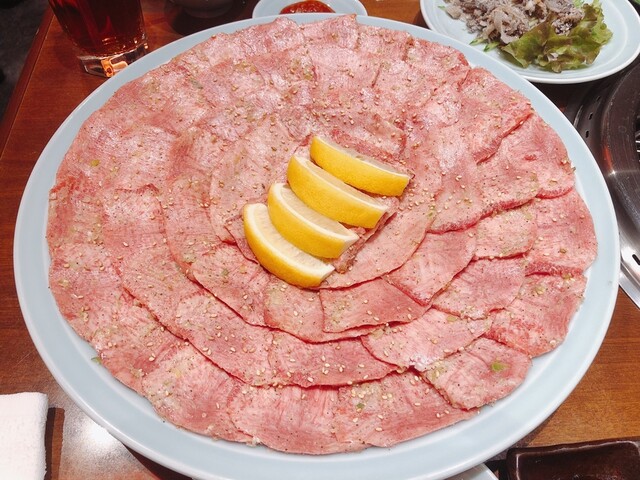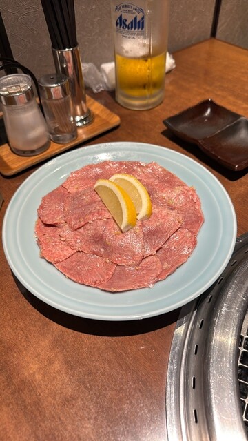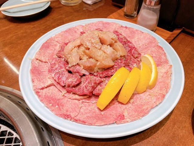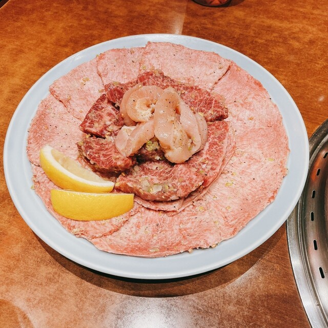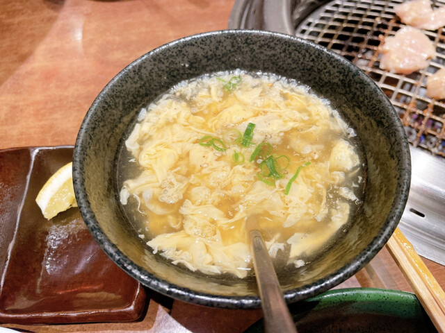 オーダー :タン、上タン、塩ハラミ、バジルミノ、卵スープ、半ユッケ、ライスなど