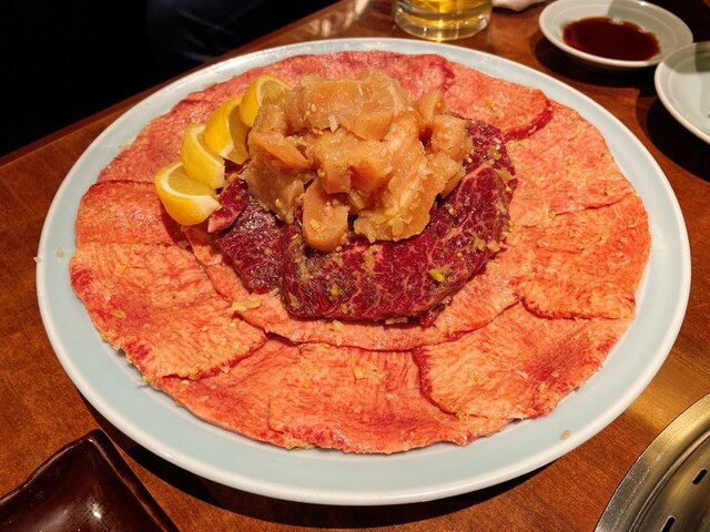 タン、ハラミ、ユッケ、スープ、プリン、ミノ