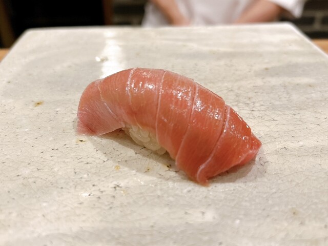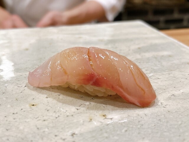 島根県産のスズキ系アラの鮨は、こちらも脂ののりが良く、客一同が唸る味わいでした。