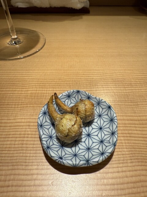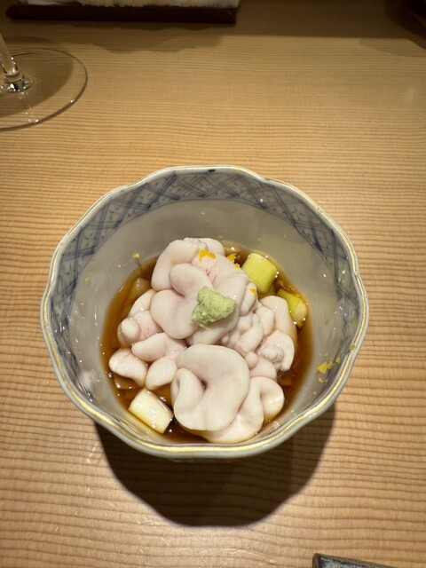 10月に結婚式をあげられた天本さん、そのせいか、料理の出し方がおしゃれになった気がする。最初のもずく、おしゃれな器にたっぷりねぎを上に乗せ変身させている。ボタン海老の紹興酒漬けも見た目が変わった。もち...
