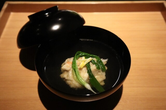 日本料理の真髄とも言えるお椀は福井県セイコ蟹糝薯を合わせた丁寧にとった出汁を合わせたお椀!
