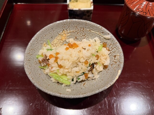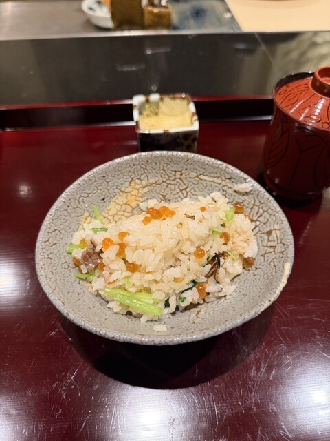 牛蒡の食感と風味が馴染んでおり、穴子のふわふわ感も同時に楽しめる最高の〆ご飯!