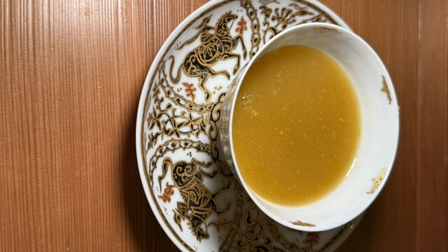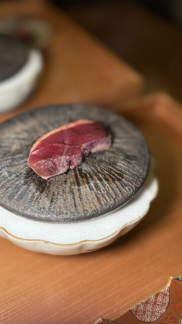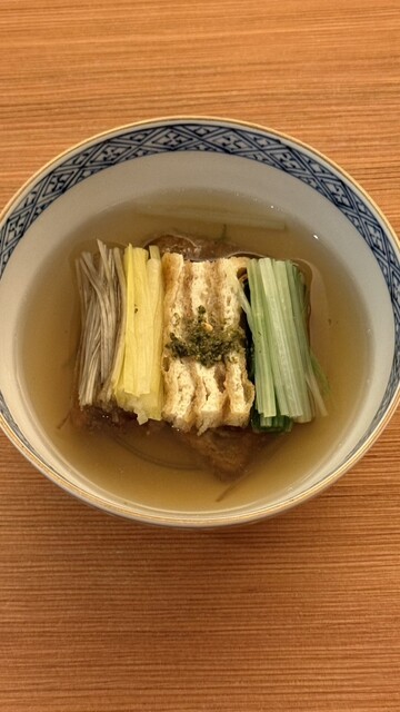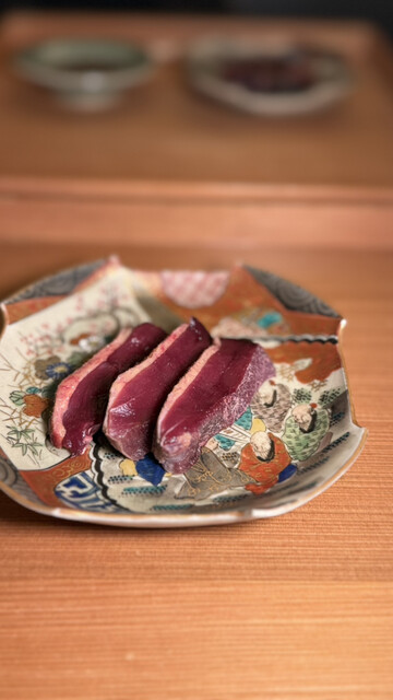 脂はくどさがなく、香りも上品でした。薬味と酢、赤山椒、醤油が添えられていて、一口ごとに組み合わせを変えられます。赤山椒を少し効かせると鴨の脂の甘さが際立ち、酢を合わせると味わいが軽くなります。醤油を少量つけると、鴨の旨味に輪郭が出て、お酒にもご飯にも合いそうな印象でした。一皿のなかで味の変化を楽しめる構成です。