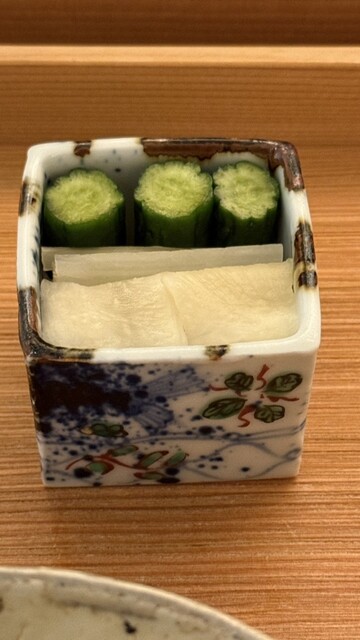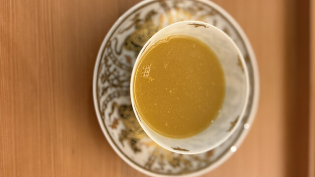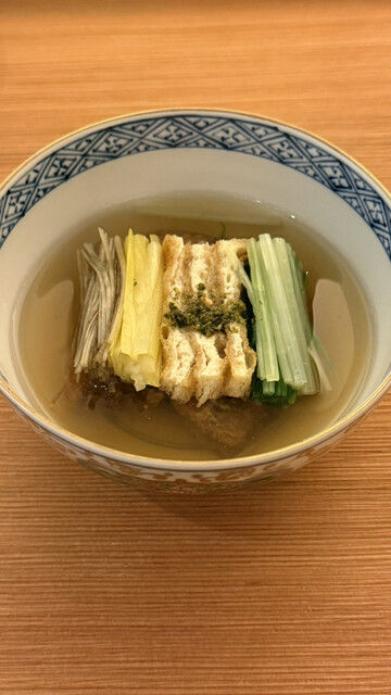 港区三田のビル地下に構える完全予約制の日本料理店です。岐阜の名店たか田八祥で修業を重ねた山本晴彦さんが、2011年に独立して開いたお店で、開業以来、出汁と季節の食材にこだわった日本料理を提供し続けています。地下へ降りる階段、石畳のアプローチ、扉の先に広がるカウンターとテーブル席。その流れが、日常から少し離れて食事に集中するための導線になっていると感じました。席間もゆとりがあり、隣席の会話が気になりにくい距離感で、静かに料理と向き合えます。ドリンクは日本酒、焼酎、ワインが幅広く用意され、料理の構成に合わせてペアリングを楽しむこともできます。サービススタッフの人数も十分で、グラスの様子や料理の進行を自然に見てくれているので、こちらから声をかけることなく快適に過ごせました。