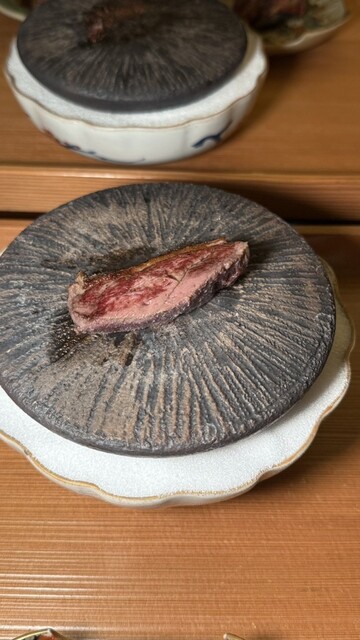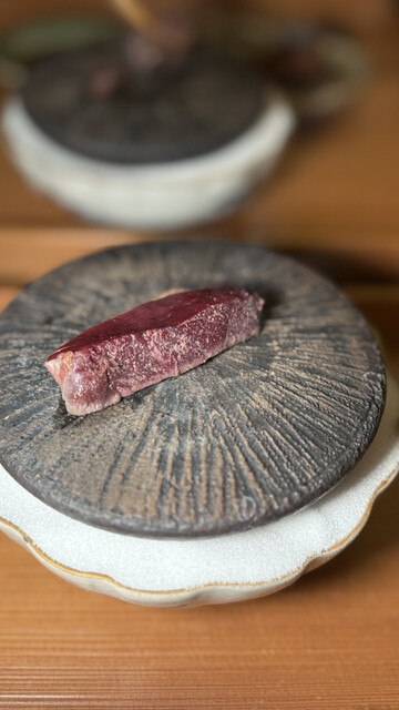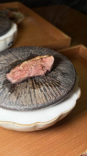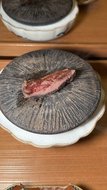 岐阜の鴨の胸肉を自分で石で焼くスタイル。