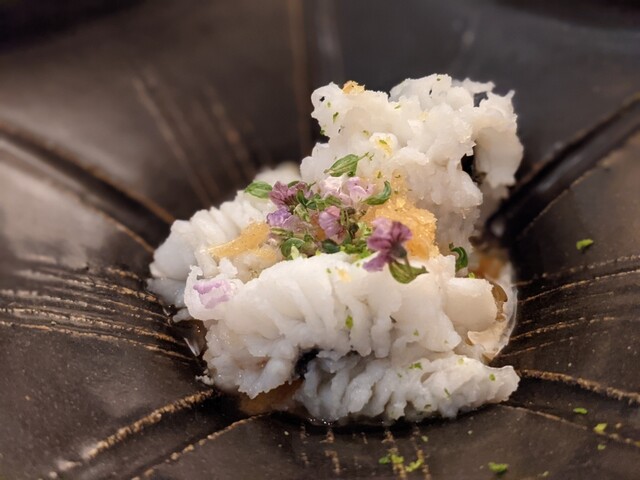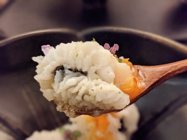 『北寄貝 蕪スリ流し 自家製キャビア』