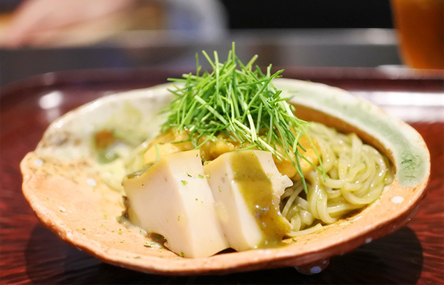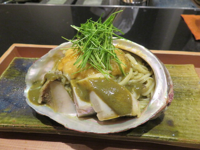 あわびうどん、福井の黒鮑と函館の雲丹で (੭ु ›ω‹ ...