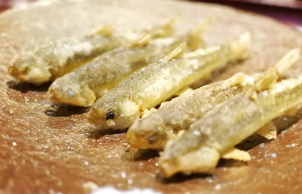 『白魚の天ぷら 自家製唐墨』