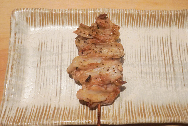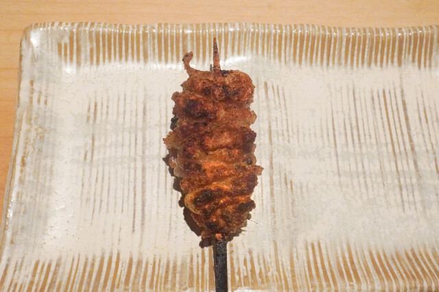 多くの人が焼鳥でNo.1と言う鳥しき、私も大好きだ。一般的な伊達鶏を使っているが、池川さんが厳選する鶏は、その時点で他のお店とは違っているのだろう。その日にすべてさばく、作り置きがない新鮮さもぷりぷりな味わいの理由だろう。それとなんと言っても焼き加減、最近、低温で火を入れてお肉の旨味をだす焼鳥が多くなっているが、鳥しきでは強く火を入れる。強く火を入れて美味しいのは鳥しき以外判らない。絶妙な焼きが美味しさの秘訣だ。