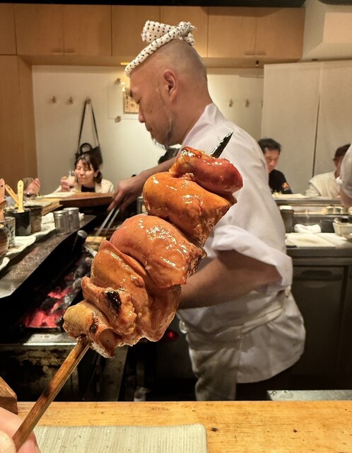 友人から枠を譲ってもらったお陰で、念願の訪問ができました。17時ちょうどに入店し、全種類の串をストップなしでいただいたので、22時34分に退店。総滞在時間が5時間34分間に及び、今まで体験した一番長い食事でしたが、28品を満腹いっぱい食べさせていただき、満足感が半端なく、さすがの日本一の焼鳥屋でした!