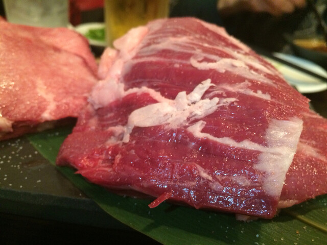 また、塊で焼き上げられたシンシン、最初に出てきたタン元なども一般的な焼肉屋のレベルをはるかに超越した肉質でした。その他のお肉も佐藤さんがこの日のために厳選してくれたものばかり。冷静に考えて有り得ないくらいの贅沢ですね。