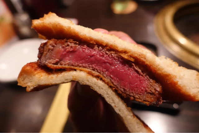 このあと焼きものがいくつか続いて、単にお肉だけを食べさせるのではなく、すき焼き風にしてみたり、カツサンドにしてみたり(パンも大阪のル・シュクレ・クールに特別に作ってもらっているという拘りよう)、そして最後はシャトーブリアンをご飯に乗せて食べる名物の"ブリめし"で締めるという肉好きには堪らない構成。