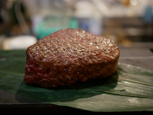 焼きに関しては、どのスタッフもきちんとした教育は受けているとはいえ、やはり勝手知ったるというか、自分の好みを最も知ってる方に焼いていただくのが最高の贅沢ですね。たぶん、こちらも何度か来て、お店に好みの焼き加減や構成を覚えてもらえるのではないでしょうか。