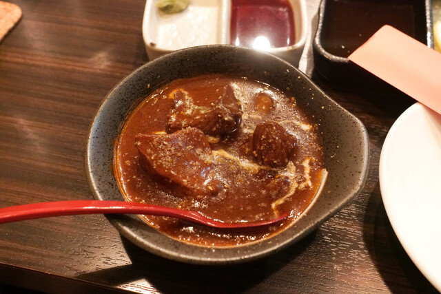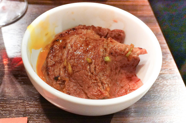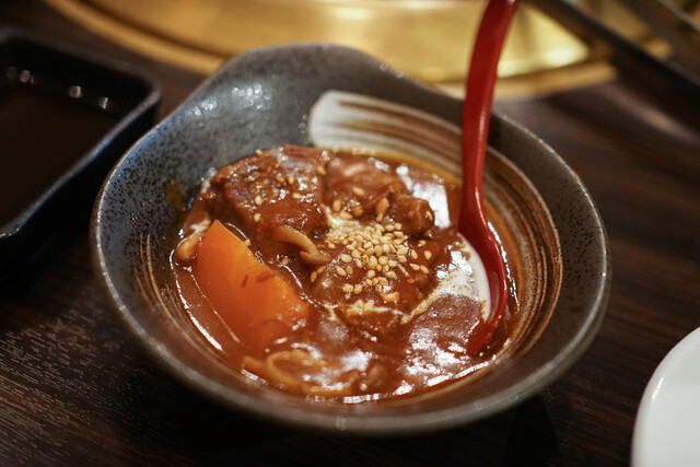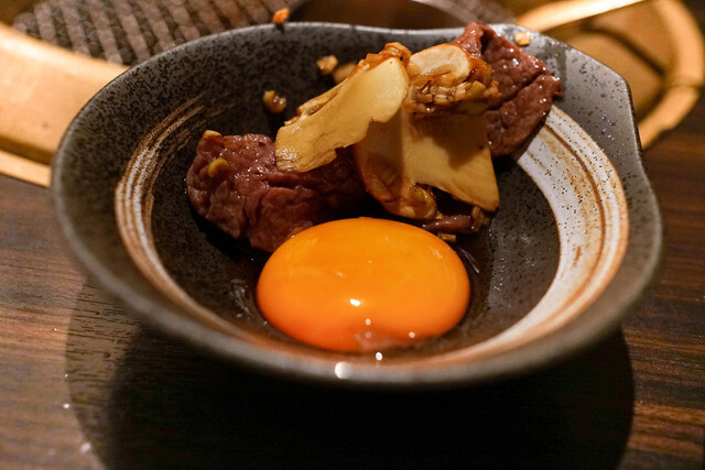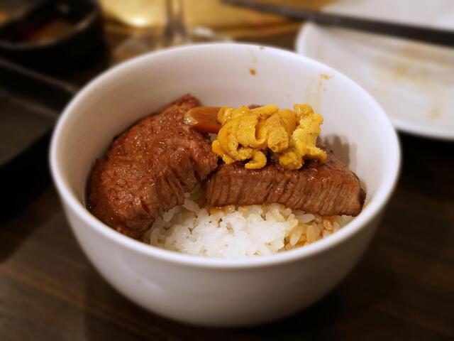 最初のビーフシチューも焼肉ではないが、焼肉店としては最高の美味しさ。定番のタンとハラミは今回もすばらしい。この時期はブータン産松茸が加わる。すき焼きにぶり飯に、一味加わりこれがまた美味。前回はぶりカツ、ぶり飯が巨大だったが、今回は普通に戻りやや控えめの量、それでも普通の量じゃないお肉の量、これだけのお肉がこれだけの量食べれてワインも沢山飲んで17000円ほどとの値段はとてもうれしい。