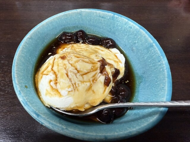 最後のデザートの「黒豆の杏仁豆腐」も、独特の食感が素晴らしい美味しいデザートでした。