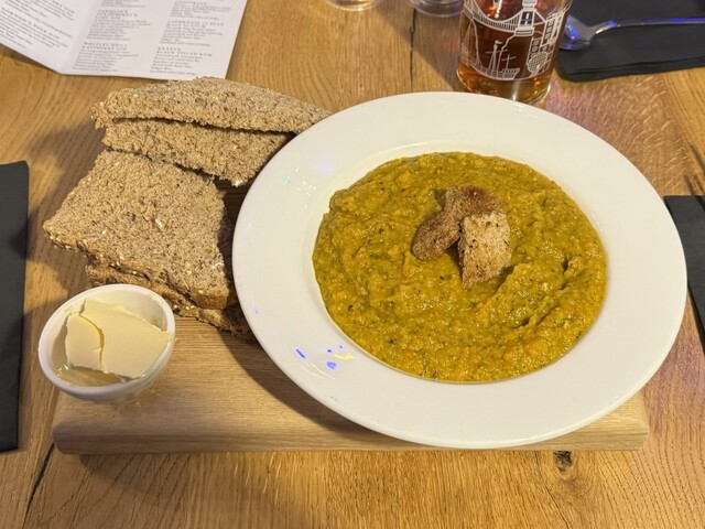 ビールは、バットクーム (Butcombe Brewing) のクラフトビール生があったので、IPAを注文してみました。飲みやすくて素直な味。そこまでガツンとは来ません。6.50 UKポンド。アルコール度数5%。