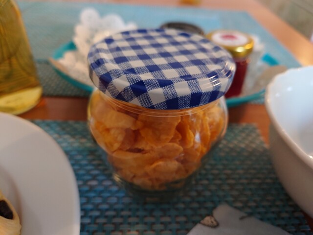 写真は朝、ご主人から部屋に届けられたバスケット入りの朝食です。