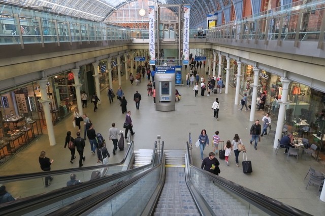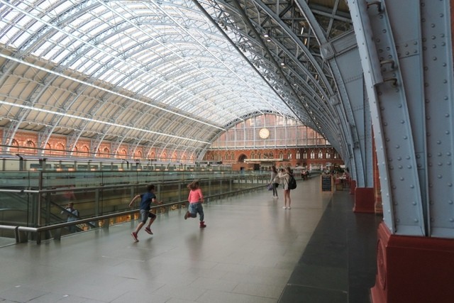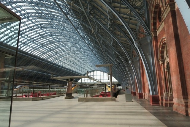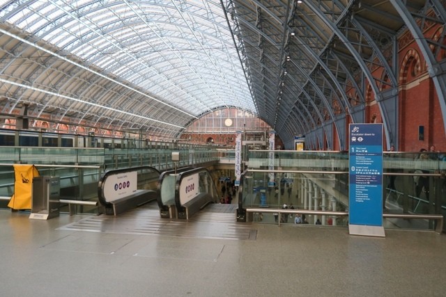 従来、Waterloo stationだったユーロスターのイギリス側の出発駅は、2007年11月14日にリノベーションに伴い、St Pancras International Station に変更されました。写真をご覧いただきお分かりのようにガラススケルトンのエレベーターに象徴され、とても開放的でモダンです。