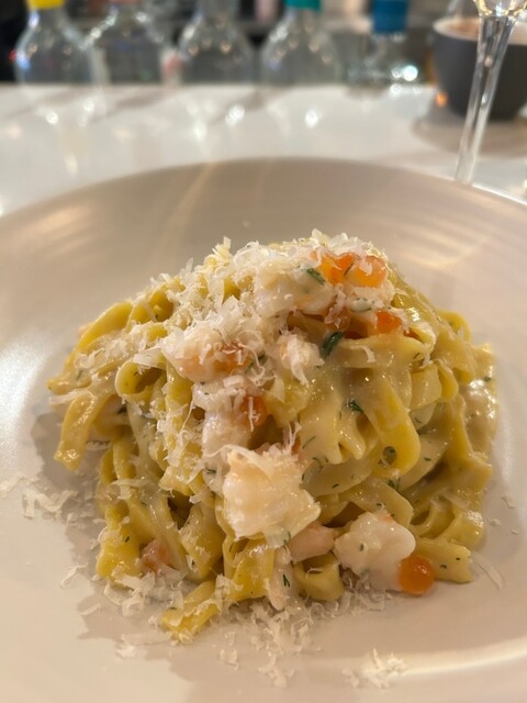 今回はKing prawn, keta caviar, anchovy cream, fettuccineを注文。