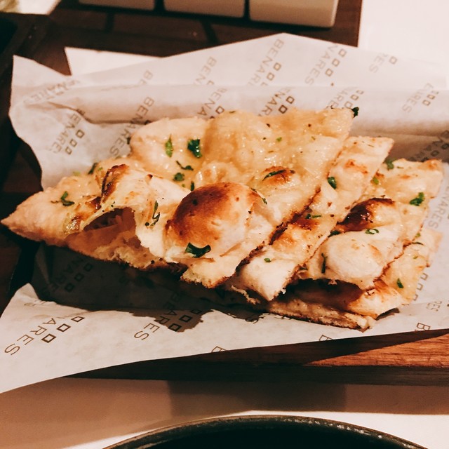 丁寧に作りこまれた創作ナンのおいしさ。バーミンガムのインド料理店でも思ったけど、ナンって日本で食べるとたいていどこのインド料理店でも絶品なのに、イギリスではどうってことない。小麦と水など環境のせいだろうか。