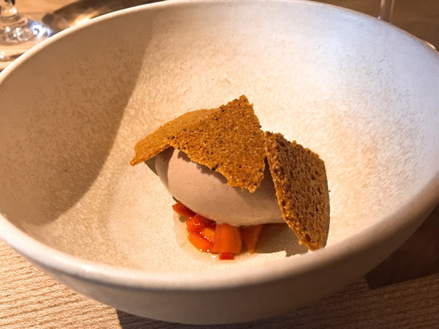 最後のアイスクリームはドライフルーツのパパイヤが戻してあり、そこにアマニオイルかな?が添えられていました。
