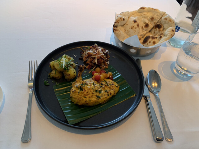 星付インド料理店多数のロンドン、1927年創業の老舗店でランチ。リージェントSt.から1本入ったところにあります。平日12時開店直後、平日シェフズスペシャルはチキンかタラの2択でチキンオーダー。イギリス人が食べられるのか?と思われる位深みあるスパイシーさ(๑˃̵ᴗ˂̵)