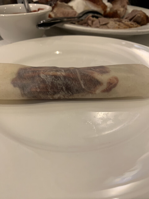 ハーフポーションでも十数本分あり。皮だけではなく身もサーブされるので食べ応えあり。洗練さでは日本の北京ダックに敵わないが、ガッツリいただけるので大満足。