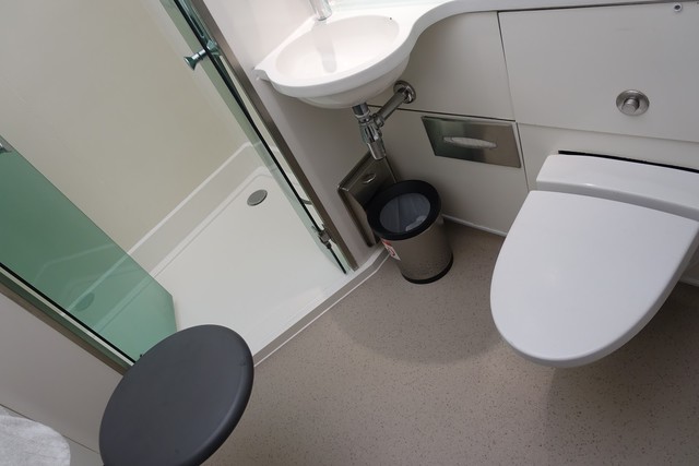 シャワールームはシンプルで機能的。特にファーストクラスらしさは感じられず、どの空港にもあるシャワールームと同等のものでした。