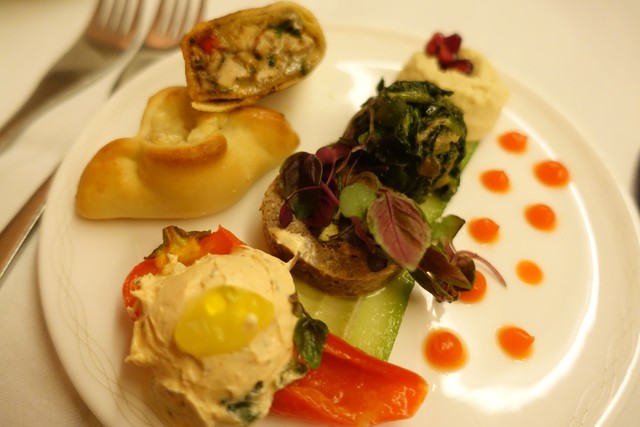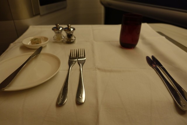 飛行機の上でも軽く食べようと心に決めていたので、メインにはニース風サラダを注文。マグロの量がガチヤバであり、サラダというよりも上質なシーチキンをたっぷり摂ったという印象。