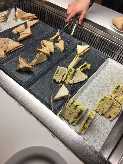 サンドウィッチにケーキ類が並べられていました。