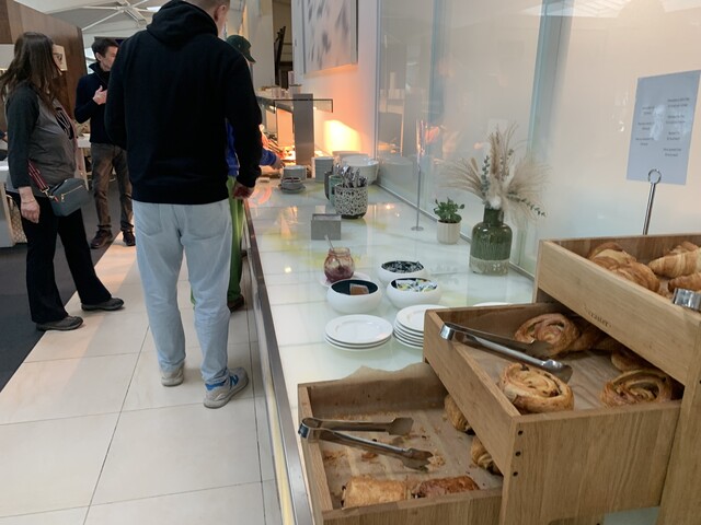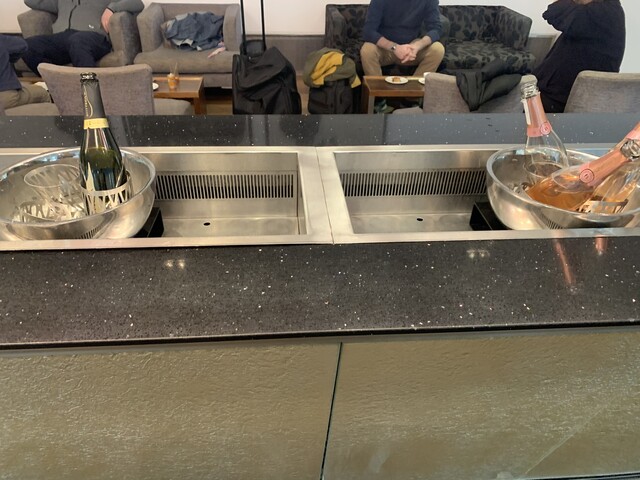 ヒースローT5Bラウンジ、11時45分発の羽田便使用です。いまだにセキュリティメチャ厳しく、前方詰まりで30分近くかかりました〜。時間少ないのでベーコン、ソーセージ、山盛りにしてスパークリングワインで流し込みます。お料理いずれも塩辛い、、機内乗り込み後、メチャ喉が乾きで軽く2Lは飲んでます。。クロワッサンとワインは上質なので、お料理最小限にするのをお勧めします。