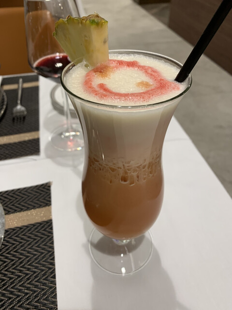 ドリンクはシンガポールスリング・ブルーラグーン・スパークリングワイン、フードはビリヤニ・ラクサ・フルーツ等をいただいた。