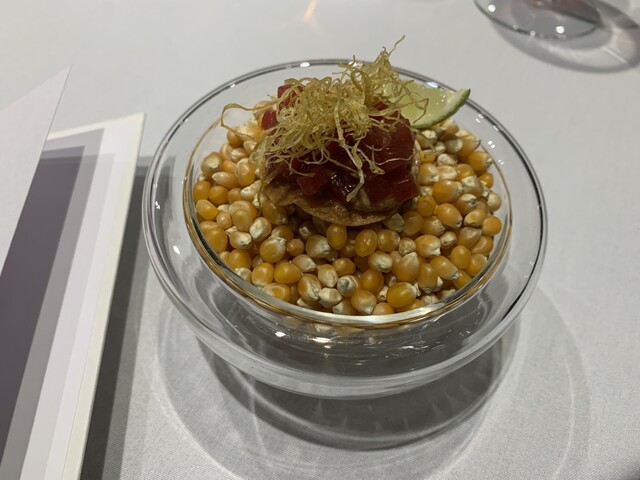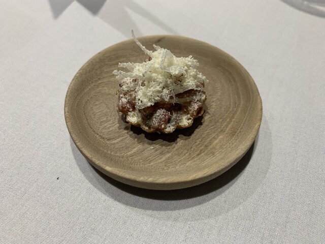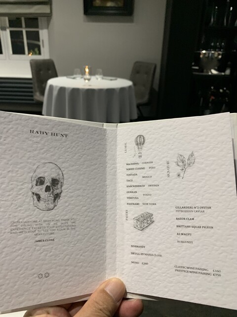 ダーリントン郊外の一軒家レストラン、幹線道路に面した集落の一角なので、ボックスの立派なバス停が店前にあります。2つ星シェフですが、世界食べ歩きの独学派、日本料理にも傾倒しており、笑える要素色々あります。グラスワインリストでは立山の日本酒iwa£40が目を引きます。ボトル£100前後で良質なワイン多数、しかもデキャンタしてくれます。グランクリュクラスは一気に£1000超えですけどね(^_^;)お料理だいたいいいんですけど、メインの群馬産A5和牛は煮詰め過ぎて塩辛い( ̄∇ ̄)