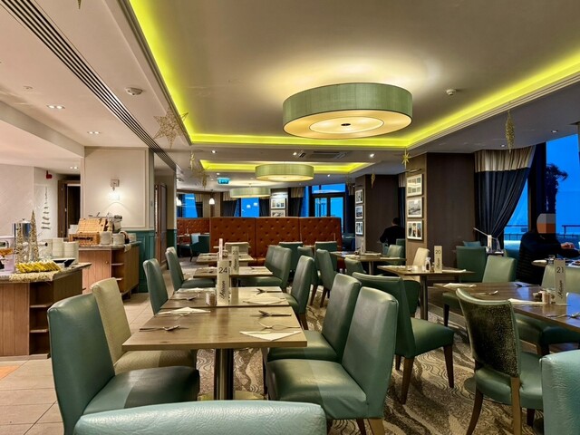 ホテル「ザ ビュー ホテル イーストボーン (The View Hotel Eastbourne)」に宿泊した翌朝。今回、宿泊プランには朝食を付けていなかったのですが、「アメリカンブレックファスト」をすっかり気に入った息子の希望で、ホテルの朝食ビュッフェをいただくことに。