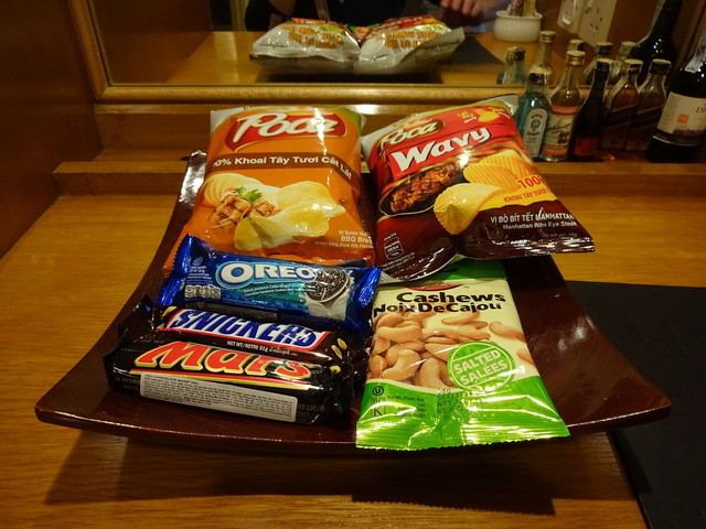 オレンジとアップルです。ドリンク、おいしかったですが、あられとナッツが
