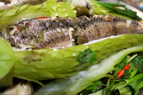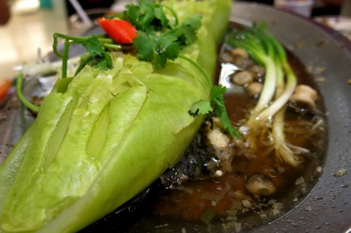 瓜で包んだ雷魚を塩コショウで煮込んだお料理です