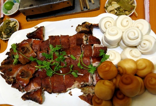 お店の入口で豪快に丸焼きされていたのは子豚ちゃん
