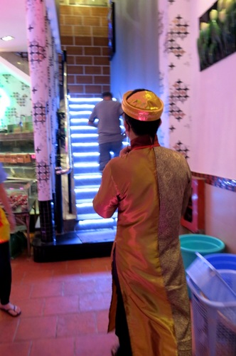 アオザイを着た男性が、私達を2階のテラス席へ案内してくれます