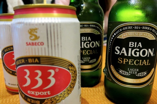 先ずは~333ビール&サイゴンビールで乾杯~~勿論、グラスに氷が入って提供されます