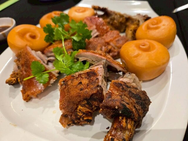 子豚の丸焼きですが、皮はパリパリで皮裏の脂肪がフニフニで美味しかったです。