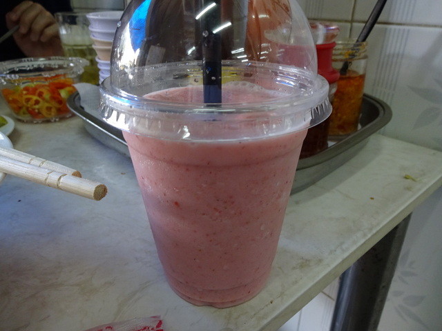 ストロベリーに。暑い日のスムージーは、本当に旨い!