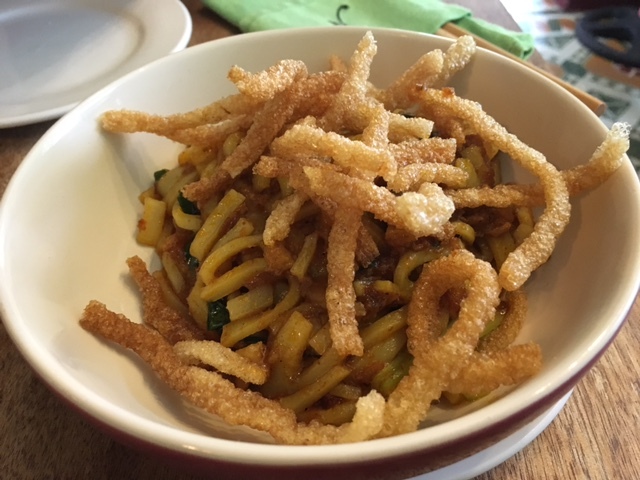 Noodleは、米粉のフェットチーネとスパイシーラグーポークのシンプル仕上げ。