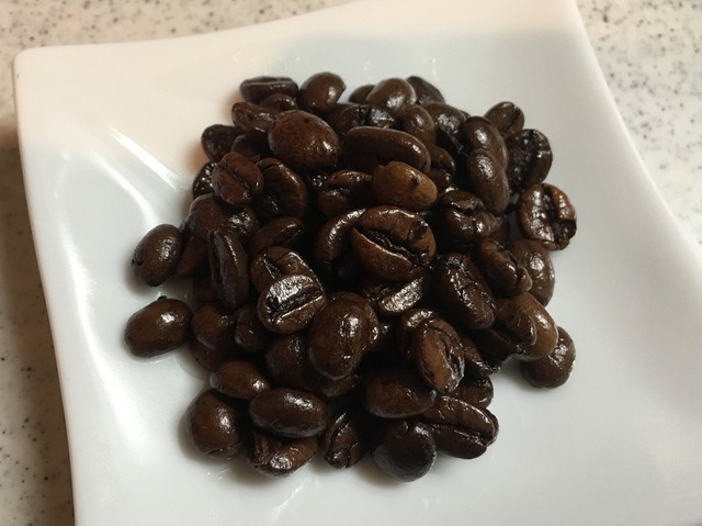 封を開けると豆はツヤツヤして甘ったるい香りがしてきますw
