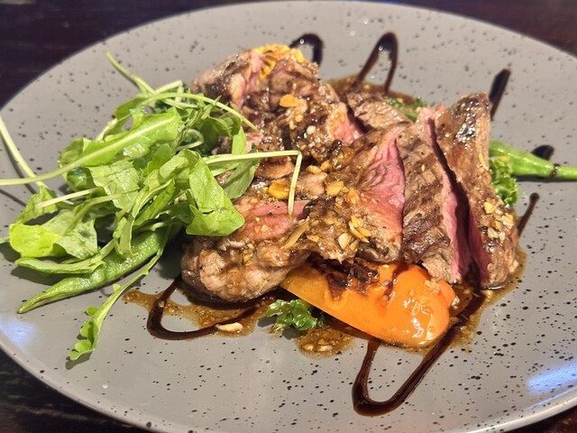 いずれもクオリティが高く美味しくいただきました。最初こそ暑さのためビールをいただきましたが、その後はワインが進むラインナップです。珍しい水牛のステーキは噛み応えがありましたが嫌な固さではなく弾力がありこちらも美味しかったです。