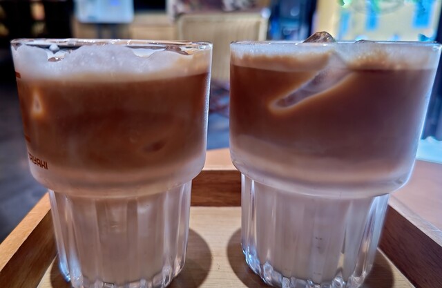 見た目は涼しげ、ミルクとコーヒーの美しいグラデーショ...