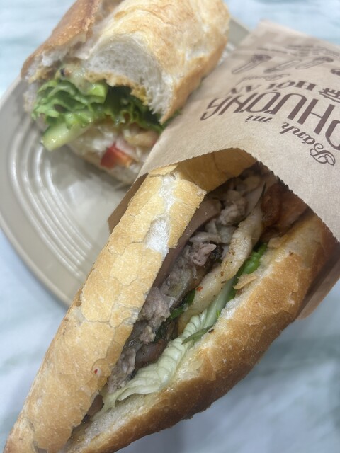 結構もりもり肉と野菜の入ったフランスパンのサンドイッチで¥280程度!...